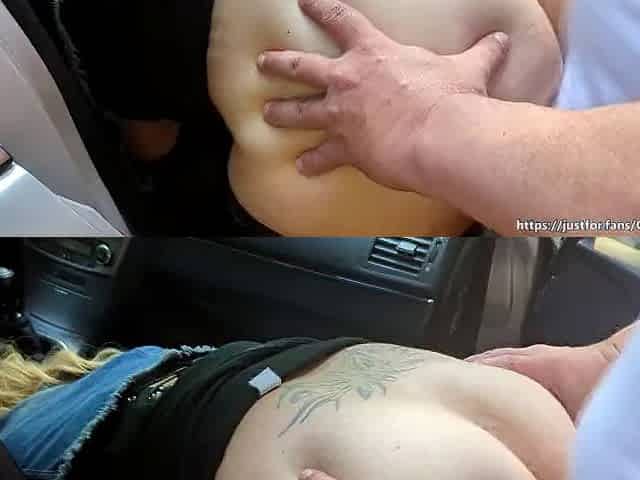 Busty German blonde pleasing her boyfriend near the road with her holes
