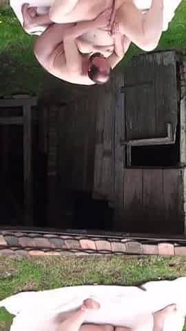 German slim natural boobs milf fucks outdoor