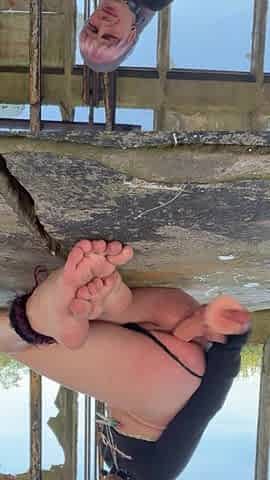 Slutty Cd Bella in pink swimsuit strips and cums.