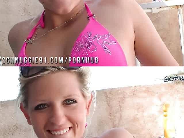 Diese deutsche Blondine von sexde.biz mag Strippen und große Dildos
