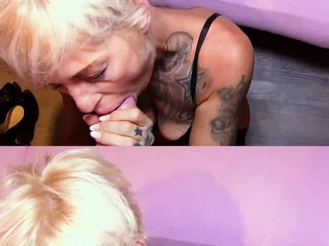 Skinny Blonde Milf Masturbates In Front Of Cam And Sucks Guys Cock