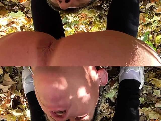 Mistress Ronja and Lady Lucy dominate slave outdoor