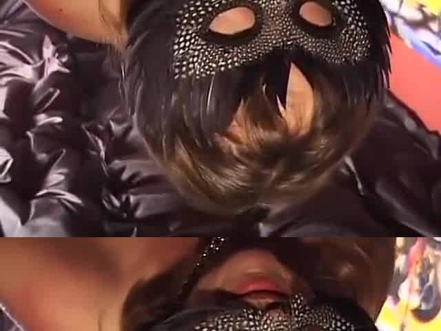Skinny femdom milf in latex mask get fucked from slave