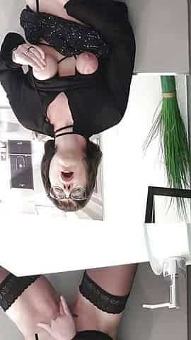 Busty German Cougar Angel Eyes sucks and jerks her slave boy