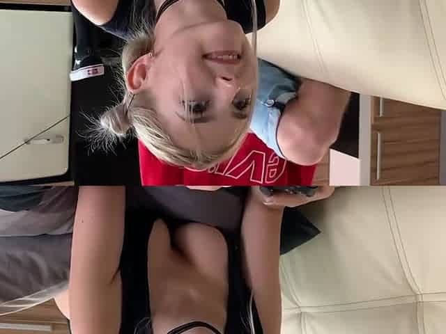 Sweet, German teen with blonde hair is sucking cock like a real pro, once in a while