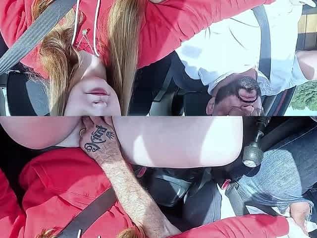 A taxi driver with a big black cock fucked a young red-haired slut with teen tits