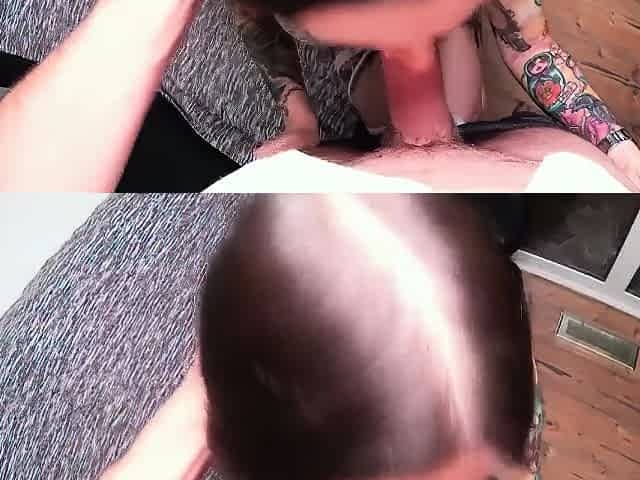 Tattooed teen slut in nylons swallows