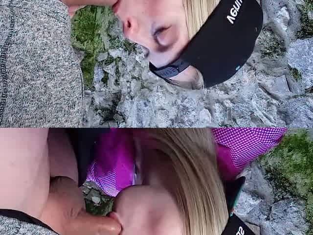 Caught! strangers will find out while hiking in the mountains! Now Im already fucking in the castle!