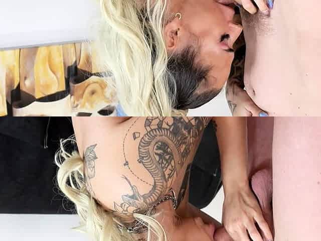 German blonde tattoo fitness slut picked up on street