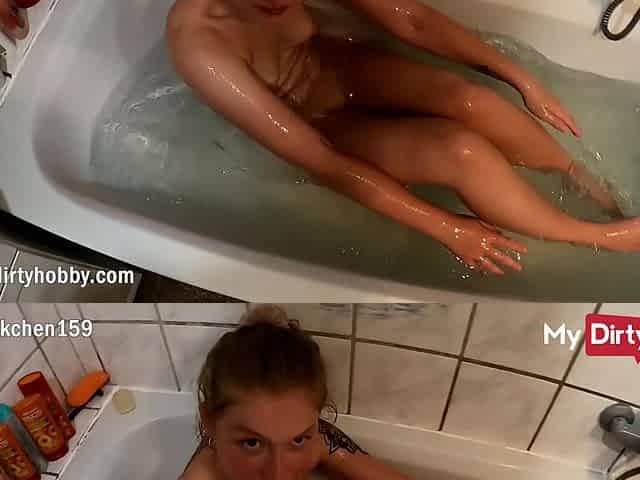 MyDirtyHobby - Curly babe swallows a huge load in the bathtub POV