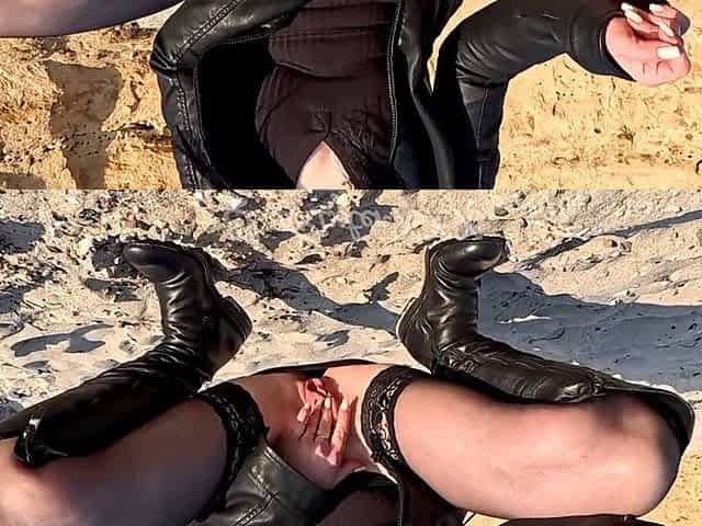 ElsaRixterXXX's pantyless stroll along the city beach and rocky seaside