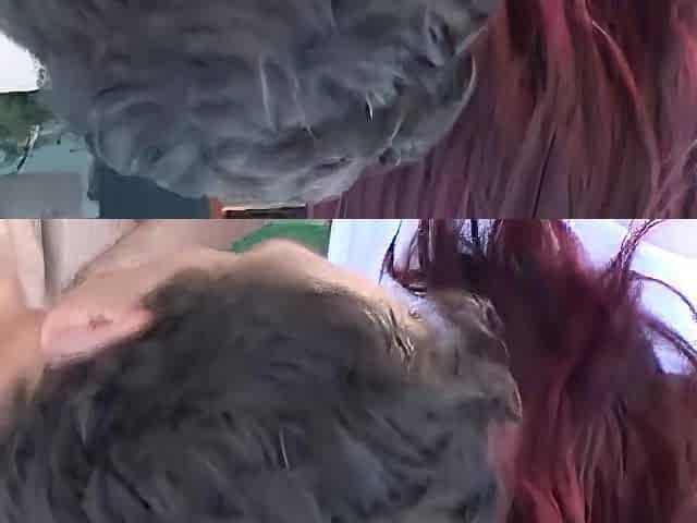 Redhead bitch wearing lingerie and stockings gets her pussy licked and screwed