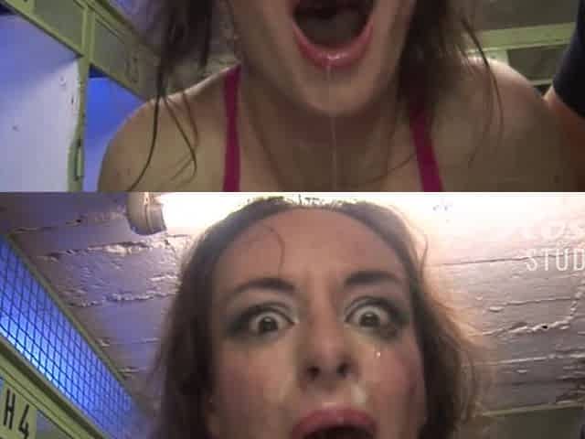 Pretty brunette German babe facialized in the bathroom