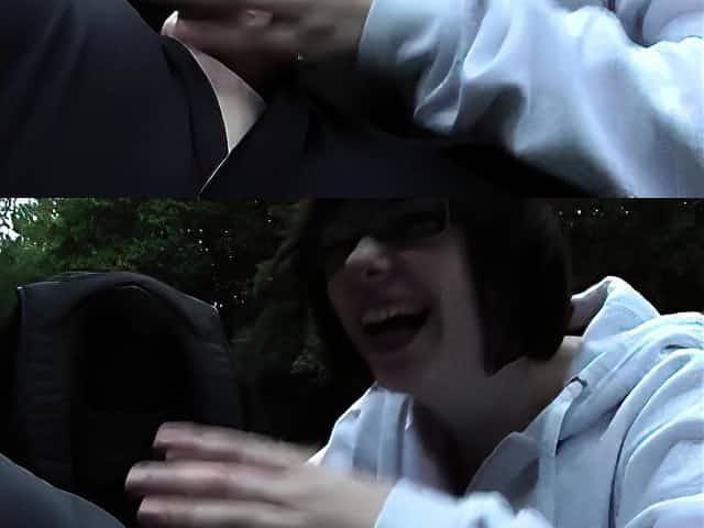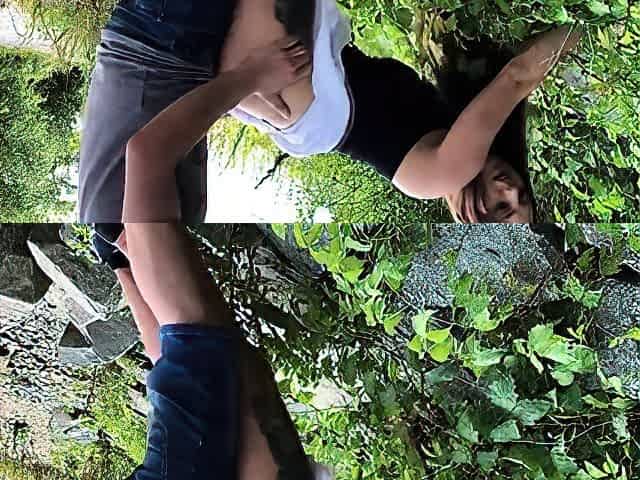deutsches Teen mit Brille fickt draussen.