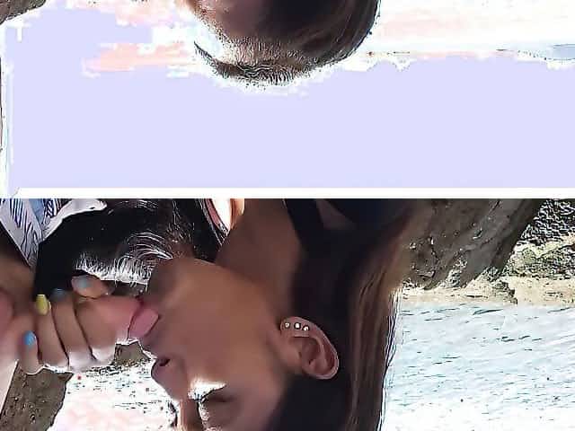 Public blowjob by Asian teen girlfriend for her big dick European boyfriend