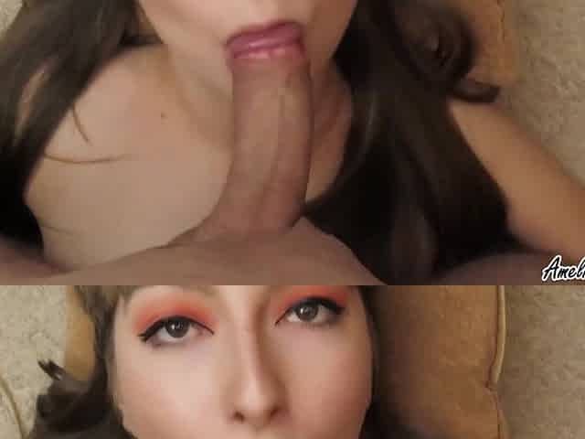 POV of a petite Asian girlfriend sucking a big dick