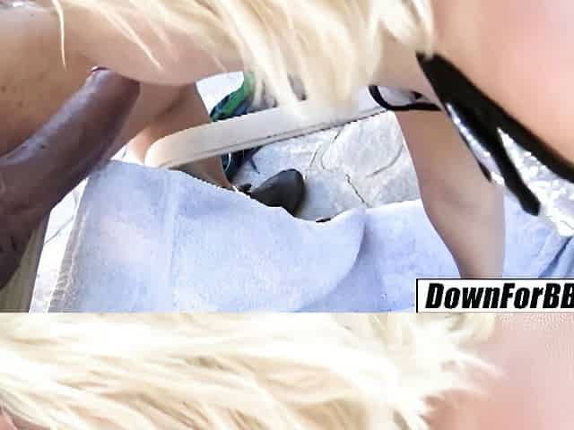 Sensual blonde Bailey Brooke takes a giant black dick in her mouth