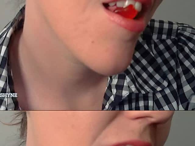 Your sexy giantess Ashley devours gummy bears (Vore)