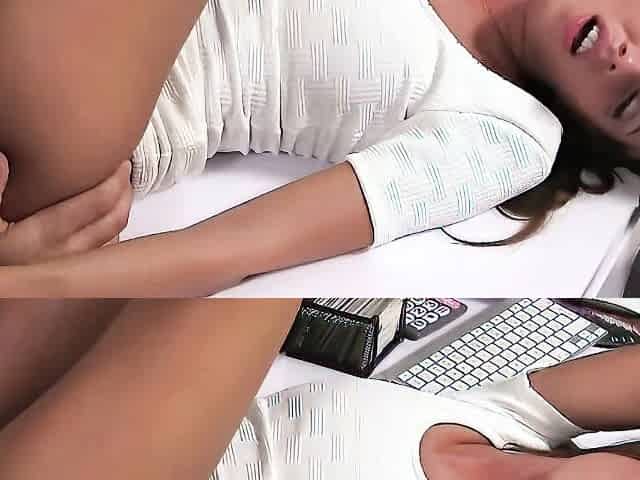 She Generously Accepts Masseuse's Cock - oiled up brunette Gina Devine massaged and fingered before footjob