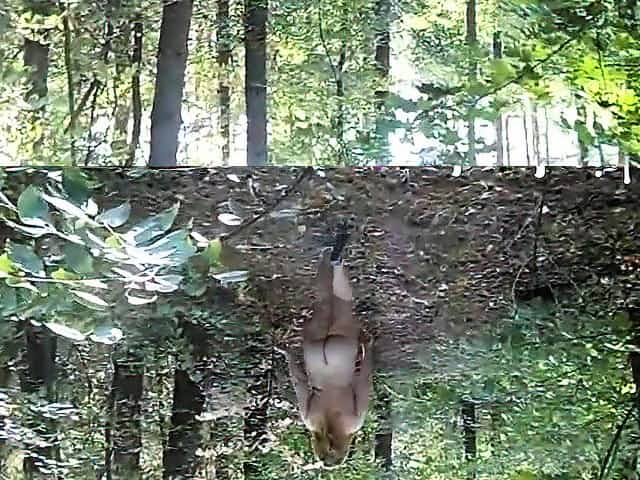 chubby girl with big booty walking nude in forest
