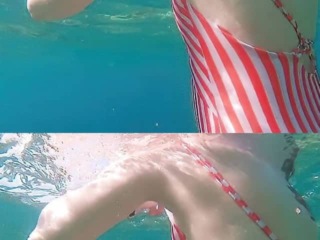Amateur girl is filmed underwater while swimming in the sea