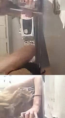 A guy peeping on wet naked girls in shower and getting