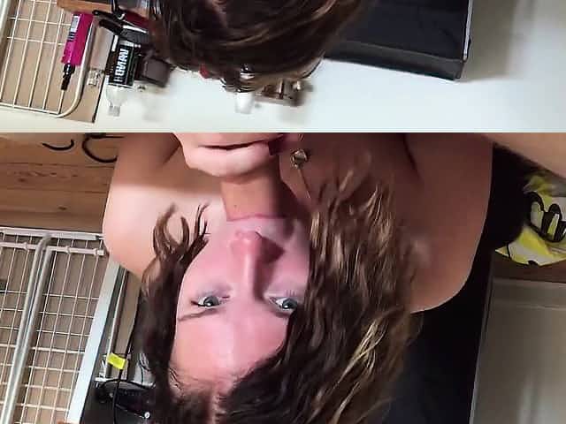 Shy Blonde Girl Giving Hot Blowjob With Her Pierced Tongue