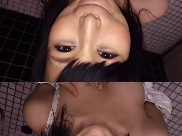 POV outdoors video of a pretty Japanese girl giving a blowjob
