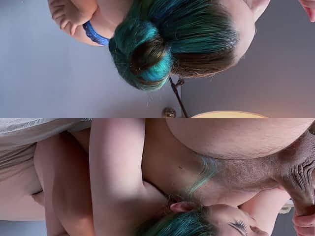 Green Hair Petite Goth Whore Takes Dick All the Way for POV Eye Contact CIM Throatpie