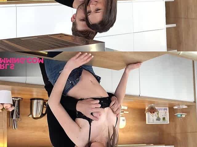 Cute brunette gets her cherry nailes with boyfriend's hard pecker