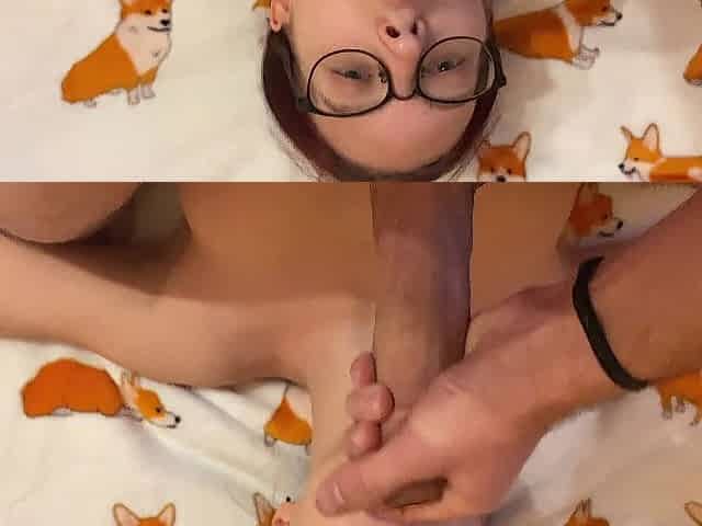 Naughty Petite Teen 18+ In Glasses Sucks Her Neighbors Big Dick Sloppy Pov