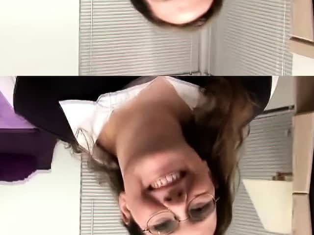 Autumn Falls in glasses get her face fucked on the desk