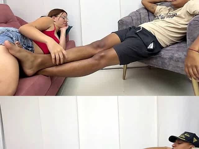 Hot Lesbian Hotties Get Fucked by a Big Dildo While Doing a Foot Show