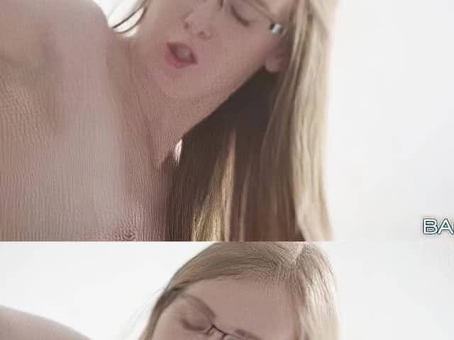 Sweet nerdy teen Sasha Sparrow nicely fucked in the cowgirl pose