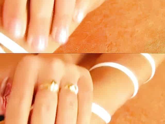 Slim blonde Gloria rubbing her peachy tight pussy