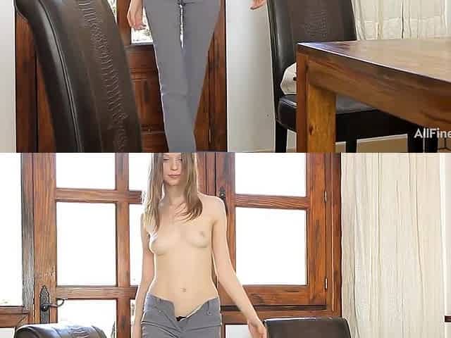 Skinny blonde Gloria spreading her little pussy