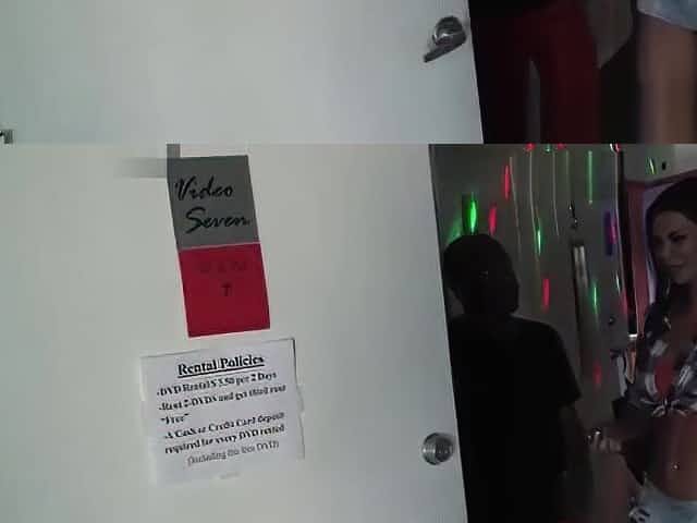 Stunning whore Dahlia Sky impales her slit and anus on hard and big dick in the glory hole room