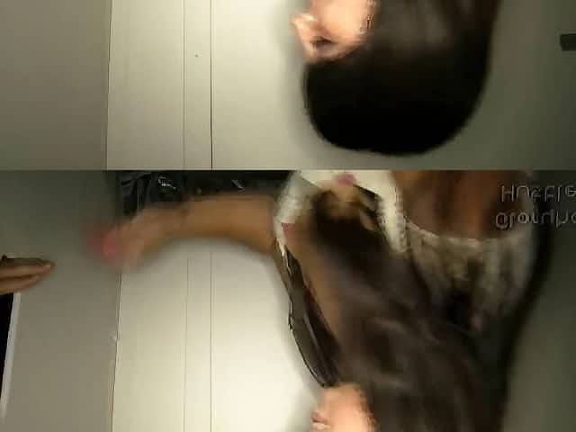 Booty babe in a gloryhole swallows cum