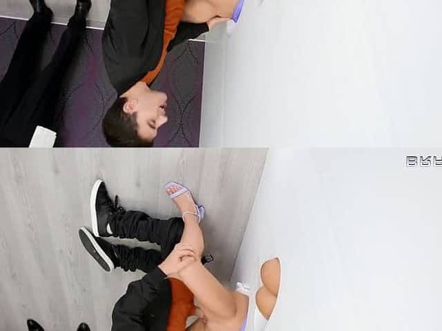 Blonde girlfriend stripping and fucking a bbc in a gloryhole
