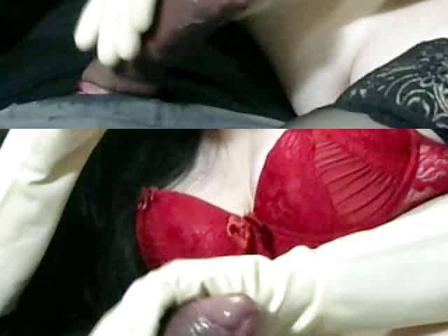 White rubber gloves smoking jerking cumshot