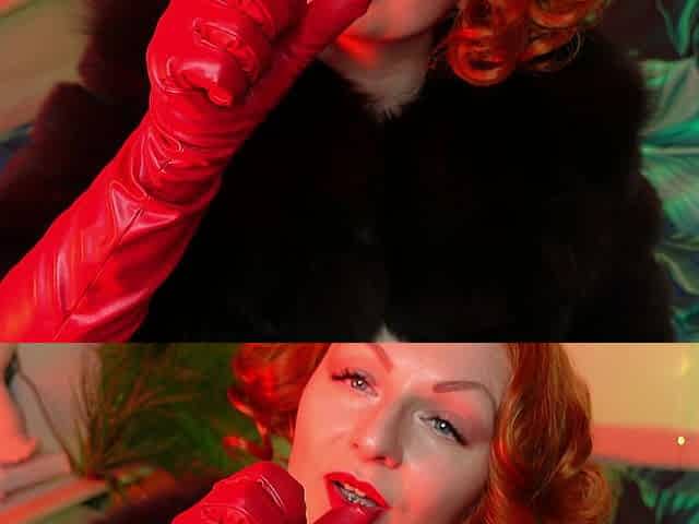 Fur fetish and long leather gloves pin up MILF