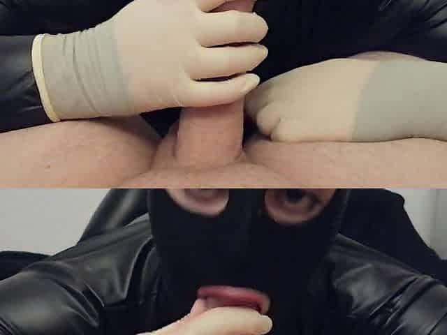 Handjob latex gloves, slow teasing handjob