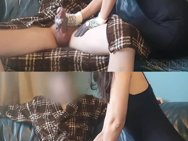Guy Gets A Glove Handjob From Dressed Woman