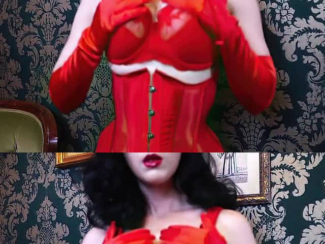 Playing with red satin gloves