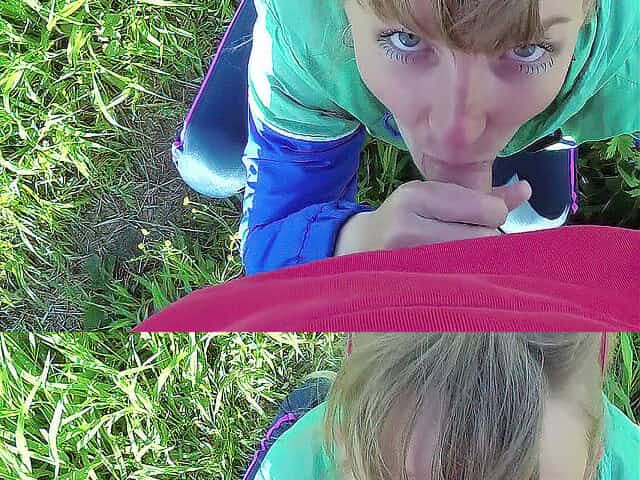 Leather gloves handjob, outdoor handjob