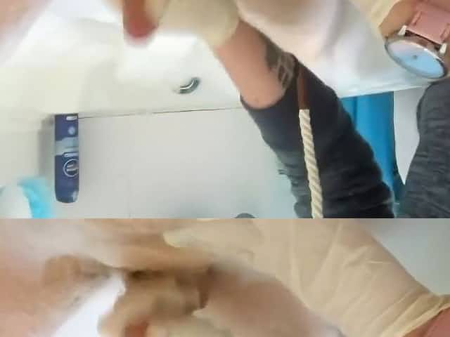 Bathtub latex glove handjob