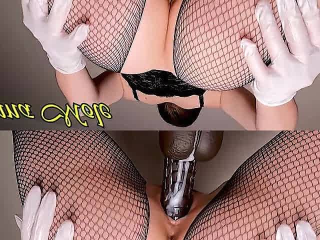 stroking a sex-toy with latex gloves