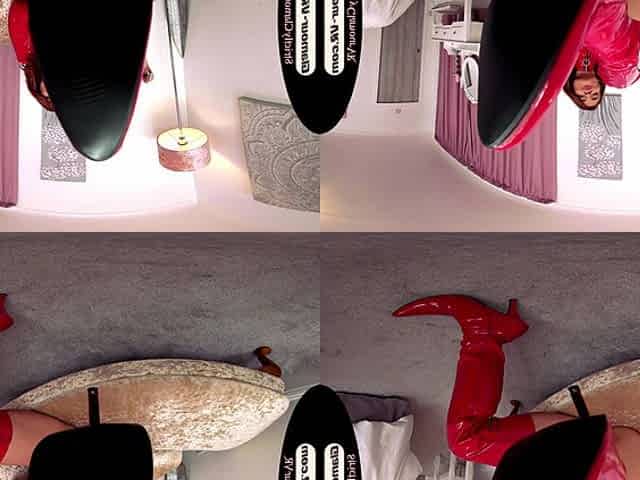 Asha Evans Red Pvc Bodysuit & Riding Crop Goddess Worship