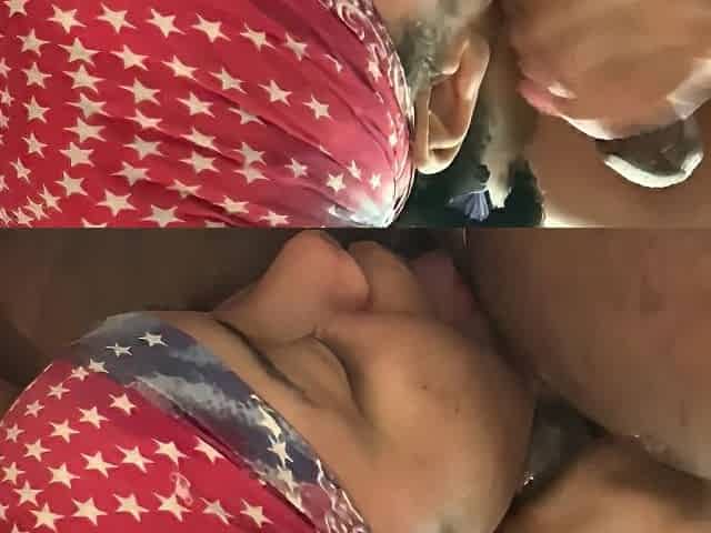 Curious Goddess dildo masturbation, tits sucking and hairy pussy licking (part 3)