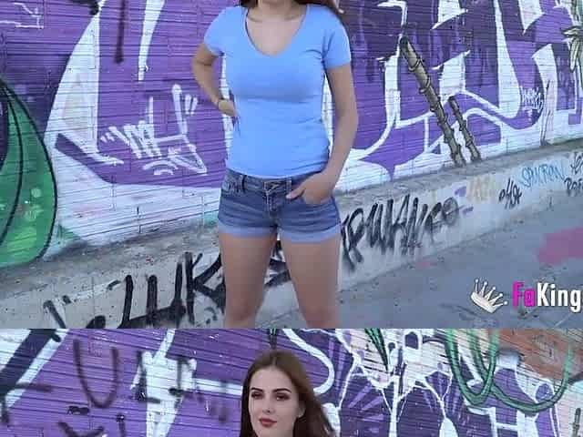 Busty teenage beauty deepthroat a big dick in public before a good drilling - Big tits